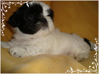 Já está comendo ração seca, toma água no bebedor de bilha, e procura o pipi dolly e/ou jornal para fazer suas necessidades.